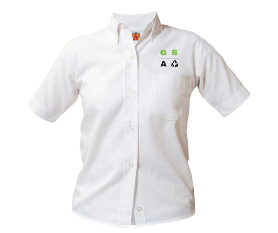 Girls Short Sleeve White Oxford Shirt (Youth)- Green Street