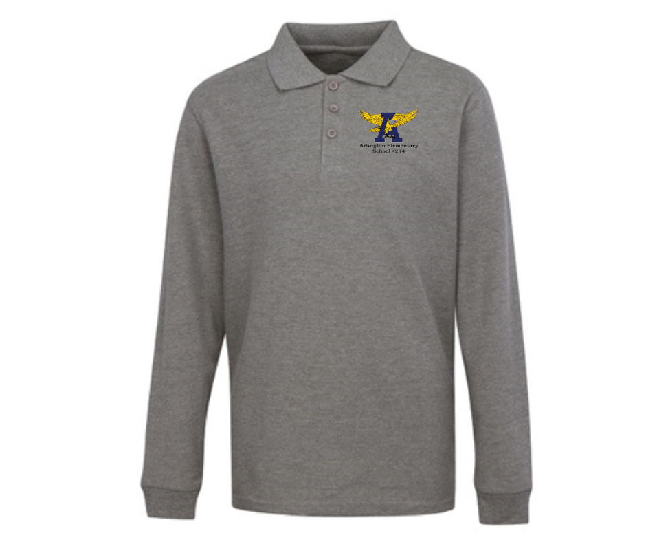 Youth Grey Long Sleeve Polo- Arlington