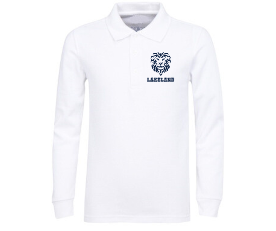 Youth White Long Sleeve Polo- Lakeland